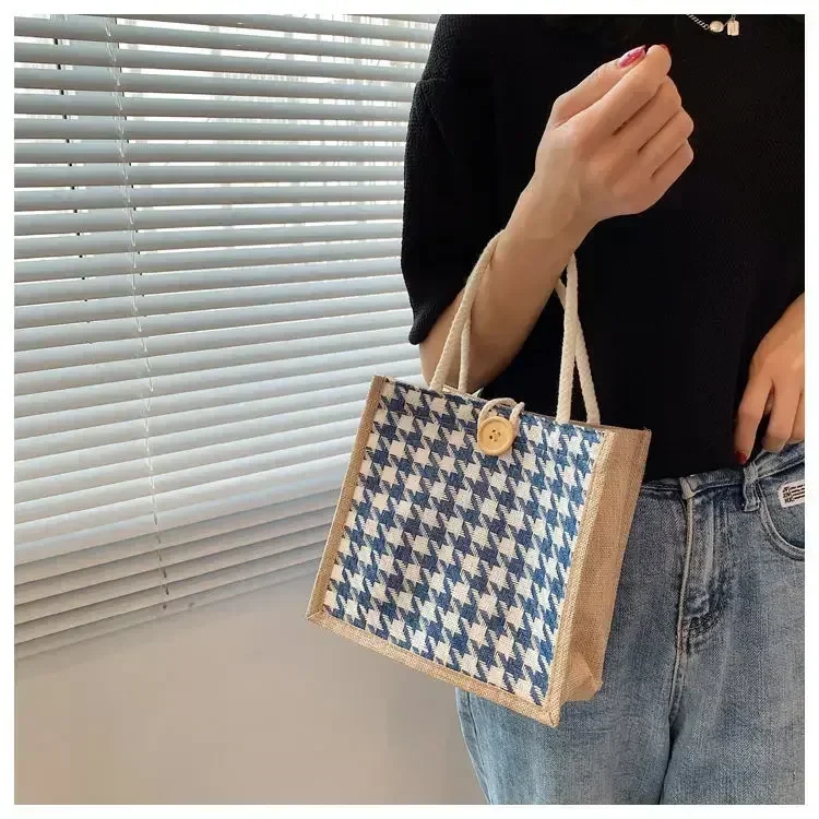 Houndtooth Lunch Bags Mini Tote Bag for Women Mobile Phone Tote Bag Lady Small Linen Casual Handbag Female Portable Shopping Bag